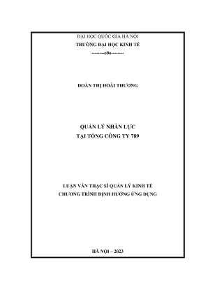 Phạm vi nghiên cứu tập trung tại Tổng công ty 789, một doanh nghiệp nhà nước thuộc Bộ Quốc phòng, hoạt động trong lĩnh vực xây dựng trên toàn quốc. Ý nghĩa nghiên cứu được thể hiện qua việc cung cấp cơ sở khoa học cho Ban lãnh đạo doanh nghiệp trong việc hoạch định chính sách nhân lực phù hợp, đồng thời góp phần nâng cao chất lượng nguồn nhân lực, đáp ứng yêu cầu phát triển kinh tế - xã hội và quốc phòng trong bối cảnh hội nhập quốc tế.